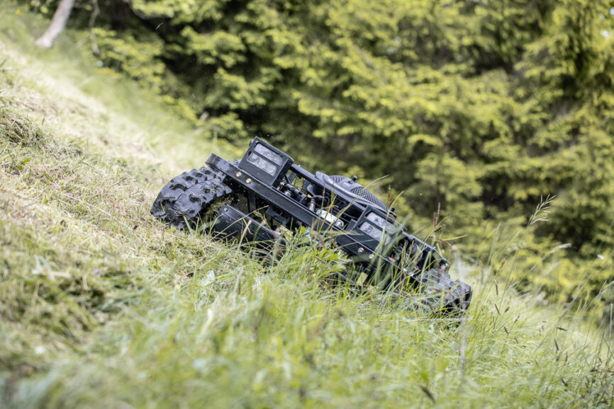 Mulčarji Koza so hibridi. Gosenice delujejo na električni pogon, bencinski motor s 23 konji pa poganja ostra rezila in alternator instočasno. Raztovanjranje in prevoz do lokacije košenja je tako tih. Na lokacijo pridemo s “pick-upom”.